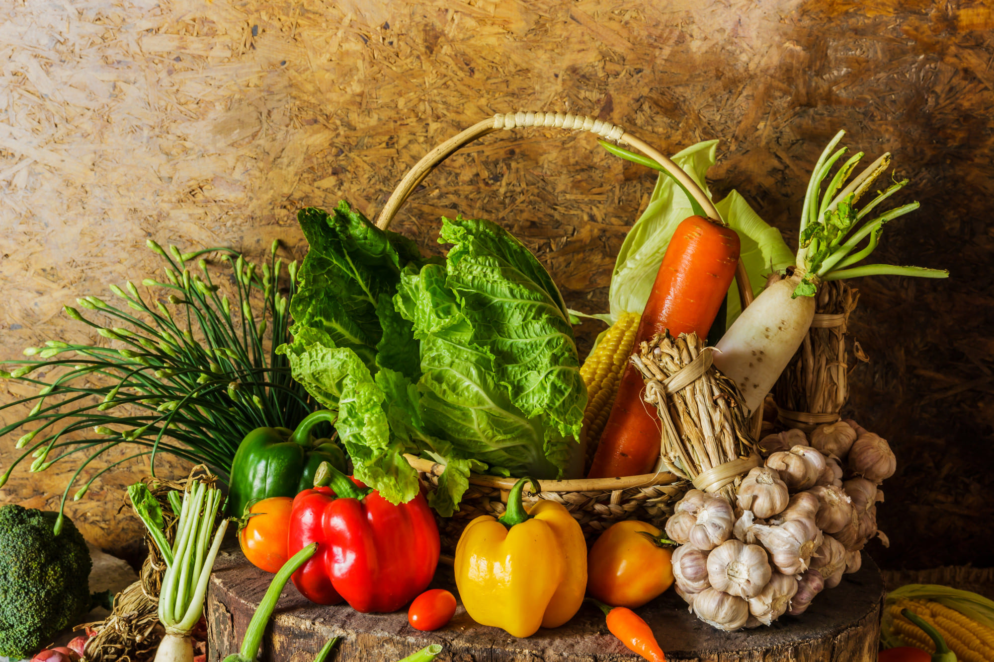 Leafy greens, root vegetables, peppers, onions, squash, and other staple vegetable items.